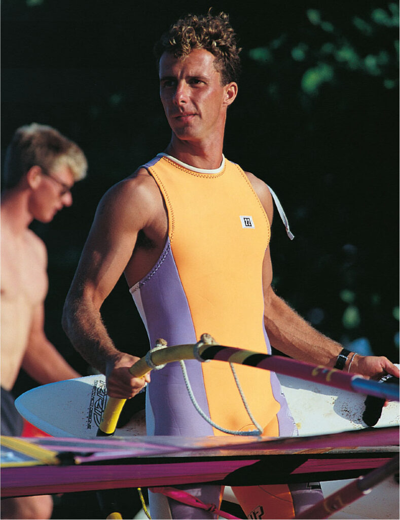 The first clothing collection, consisting of 2 boardshorts, 1 pair of bermuda shorts, and 4 T-shirts, designed as promotional wear for windsurfing enthusiasts is presented at the ‘94 Summer MUNICH ISPO trade show together with the first collection of production series windsurf boards.