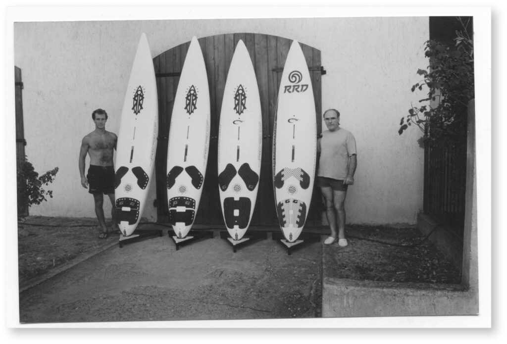 The professional windsurfing world tour (PBA/PWA tour) friends become his first hi-profile customers to compete in the world circuit on his custom shaped designs.